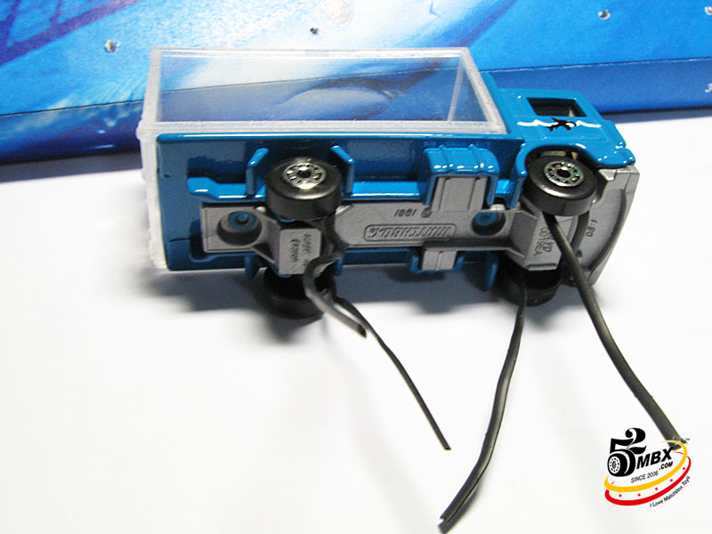 底座的背面有蚀刻的铭文:1993 Matchbox Collectibles字样,并且用螺丝固定在模型的底盘上。
