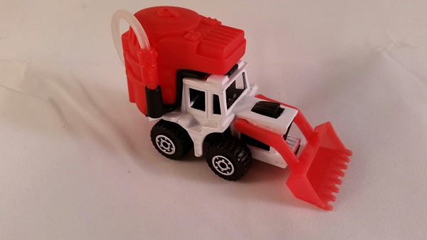 以下是原形样品部件 (从左到右分别是):为消防车设计的灰色橡胶制成的水罐原形(Tanker Blaze套装)、为铲车设计的上了红色的硬树脂水罐模型和黑底座,以及上米色的橡胶制成的水罐(Mining套装)。