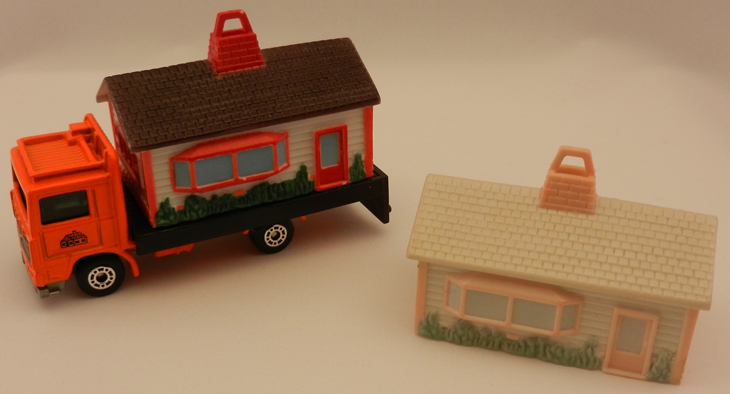 以下是House Transporter套装的早期样品。在吊臂上加上的水罐是个实心的树脂样品。白色的塑料房屋没有任何图案。