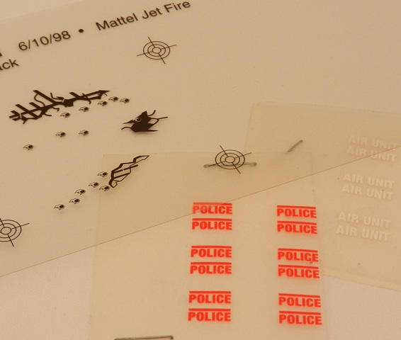 以下图中左侧显示可变色战斗机的贴纸(Jet Fire套装),右侧显示的是Mission Helicopter机身贴纸样品(Police Siege套装)。贴纸图案仅仅属于原形设计。