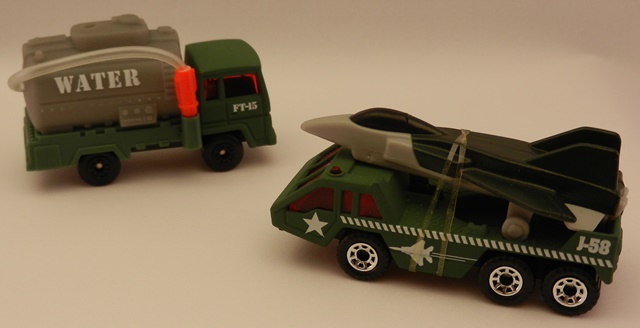 MB134 Extending Ladder Fire Truck 和 MB100 Peterbilt Tanker(chenly75:这里的MB134云梯部分其实是一个水罐,造型像云梯,但是不能伸缩,MB100则是车身可变色的,详见下文)