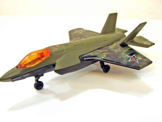 下面是关于Sky Busters产品系列的一个重大变化(chenly75插言:不是个别地区改换Hotwheels包装的变化)。为了提升模型整体的还原度,火柴盒团队为Sky Busters系列开发出了一种新型起落架,并将在2014年的大多数SB系列上使用。过去SB系列的起落架往往被诟病,后起落架中间粗大的金属轴,前起落架的铆钉也很恶心。以后,在这两个部位上将换上更真实的起落架总成。而新起落架上安装的小轮子仍然可以旋转,但整体更真实。大家可以参考上面的穿梭机或者看看下面的F-35B的2014年新涂装: