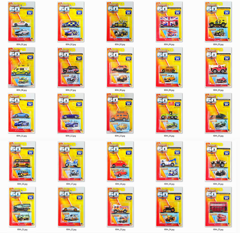 至此,散落在世界各地,车身印有60周年标志的纪念版悉数收到,也让我这个编号党难得作了一回涂装党。出于对Matchbox的好感,我收集了这个系列。我并不喜欢活在记忆里的,收集Matchbox已经不再是一种童年的回忆,而是一种习惯……还是那句话——自己觉得喜欢就好。