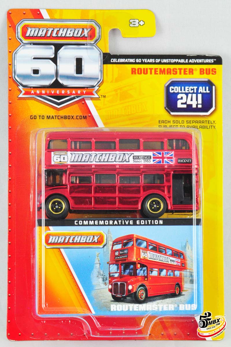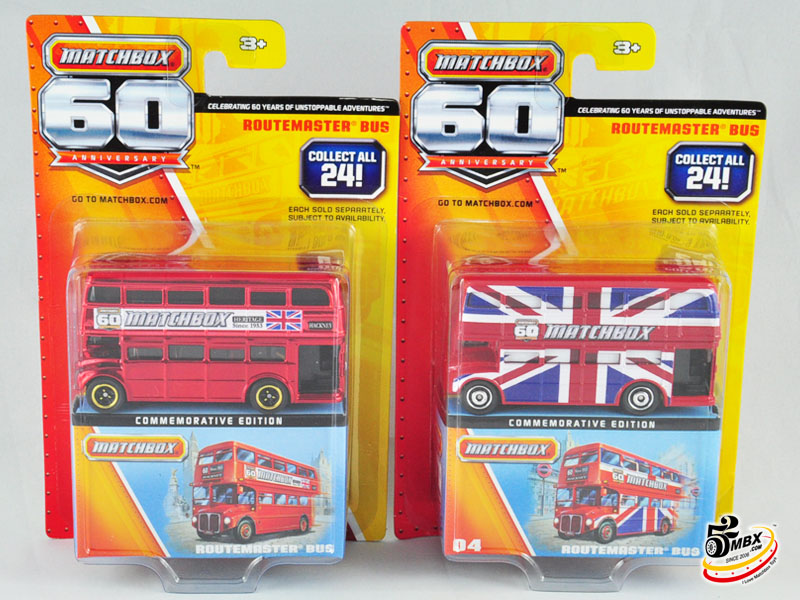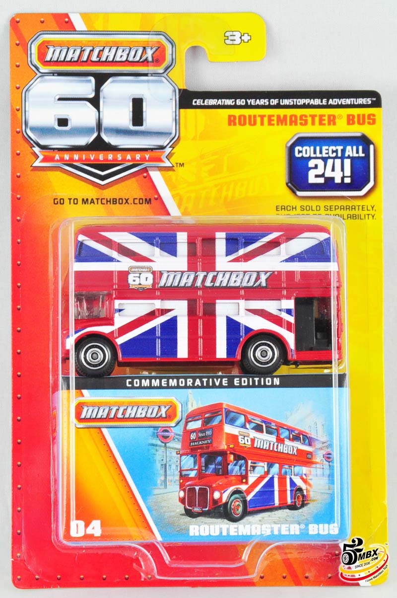 #4 – Routemaster Bus(我本人很喜欢这个涂装,从涂装上的花纹拼缝以及间隙来看,与其它模型仅仅在车身上印刷图案或文字不同,这个涂装在制作时需要将车窗先装配到位,然后与车身一起移印,是工艺要求比较复杂的产品。车身上的英国旗很好地体现了该模型作为英国标志之一的历史价值和火柴盒的历史渊源,可以毫不夸张地说,这台车是整个60周年纪念系列中的精华。)