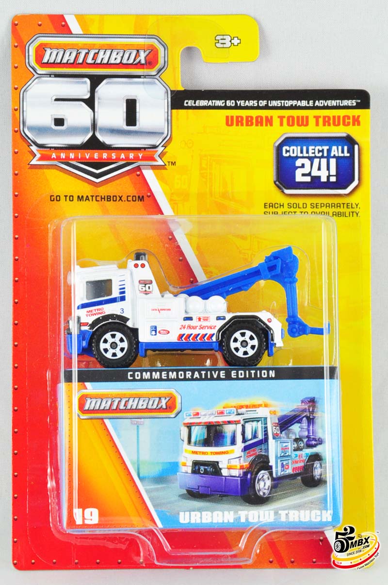 #19 – Urban Tow Truck(这是整个60周年系列中的第四台原创车型,现在好了,就连这样的原创车也要节约成本……瞧,图中车身印有60周年标志的那根金属立柱现也改成了塑料件!新编号将改为MB937。)