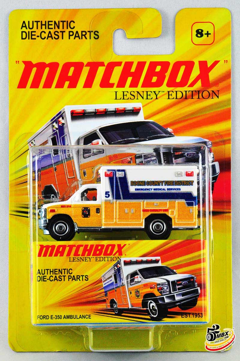 #5 – MB771 Ford E350 Ambulance(这款车本来就是合金底盘,所以包装上的文字略有一些区别,只写“Die-cast parts”,而没有写“Die-cast Body and Chassis”。现在想想当时这台车还是合金车头就唏嘘不已,要知道现在我们只能买到塑料车身的复刻版MB944了!)