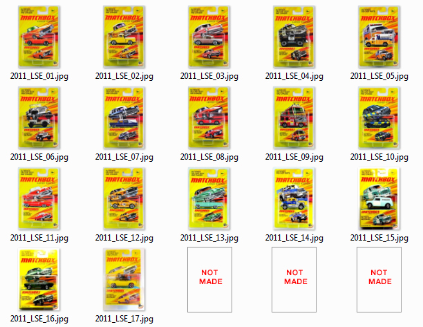 言归正传,2011年版的LSE系列原计划也会推出20个模型,但最终只发行了17个模型。有三款模型被砍掉了,其中MB629 – 1969 Camaro Z28和MB97 – Chevrolet Corvette T-Roof在2013年的60周年礼盒中作为Exclusive版本发售,而MB587 ’65 Shelby Cobra 427 S/C则没有再次发行。
