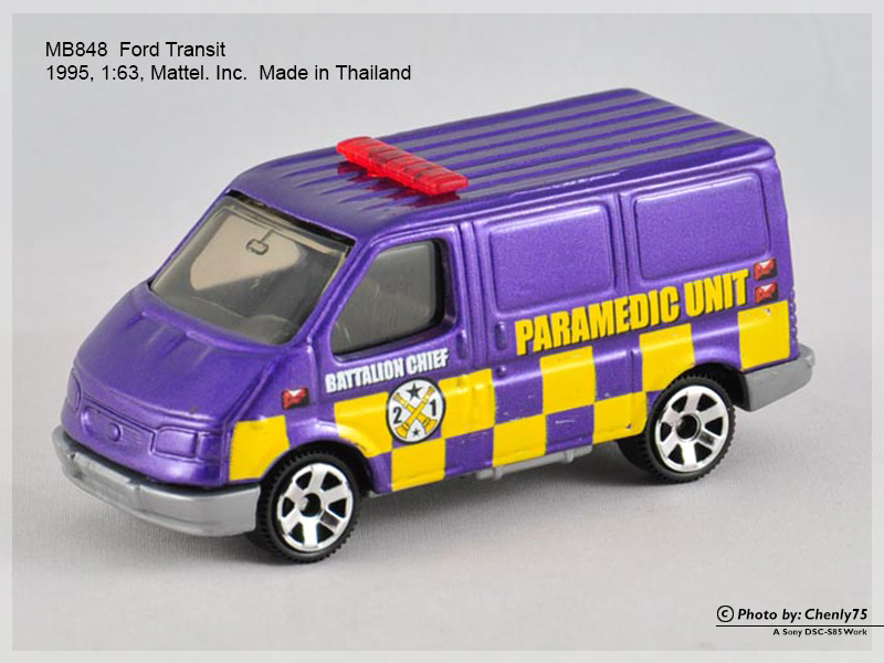 The recent new Ford Transit of Matchbox is this 7th generation MB693, however, it was soon faded out by the return of MB848 with a new light bar on top.