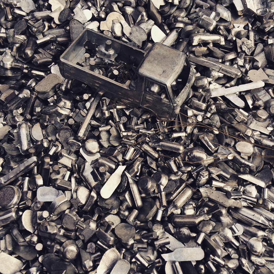 2)下面是一件Dodge A100皮卡的压铸模型毛坯,背景是压铸后切削剩余的废料,当然还是可以放入熔炉再次利用的。