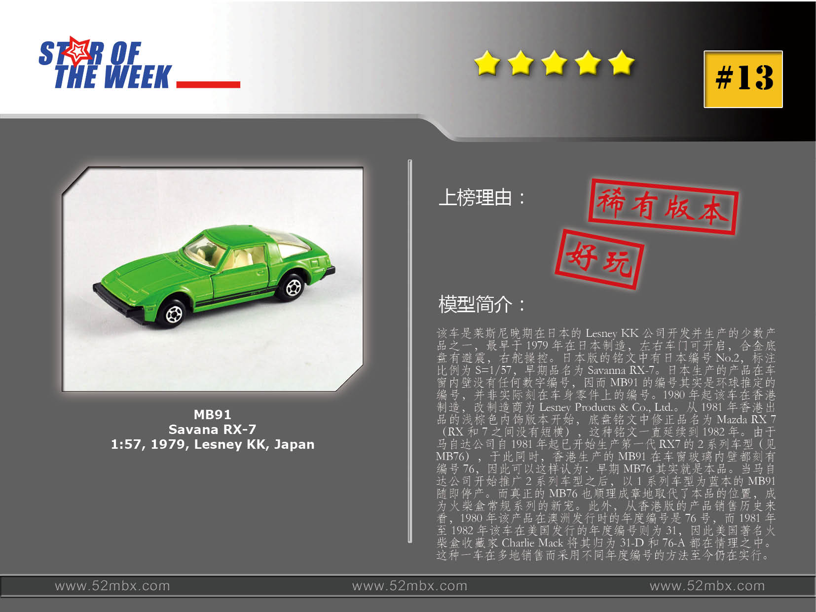#13 – Savana RX-7,就是Mazda RX7,但是这个日本版本比较稀有,故事很长,点击看大图吧。![]()