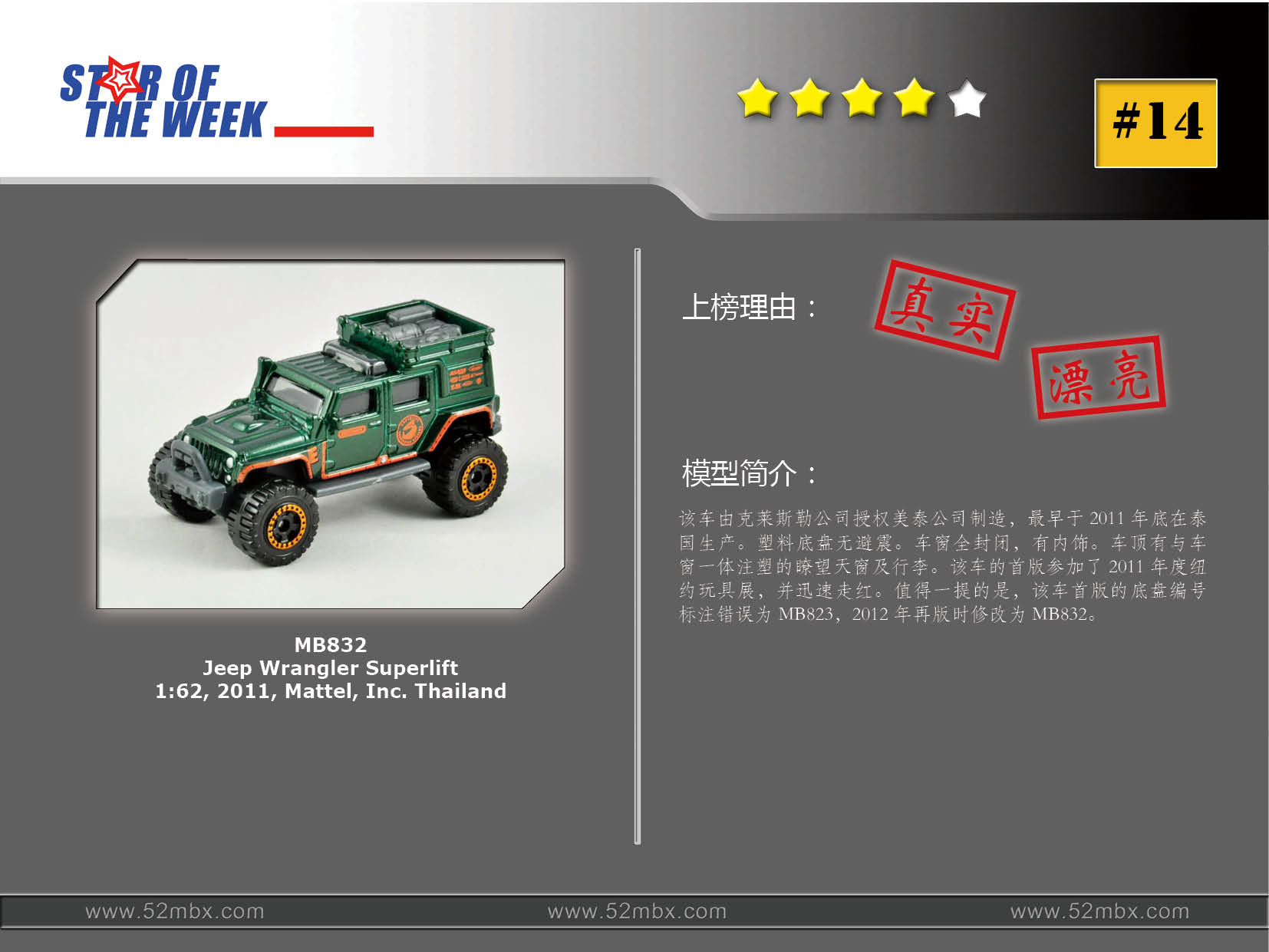 #12 – Nissan Xterra,这个版本的特点是底盘,当然好玩也是很重要的,在近期复刻的产品中,仍然包含5个零件及活动功能,实属不易。