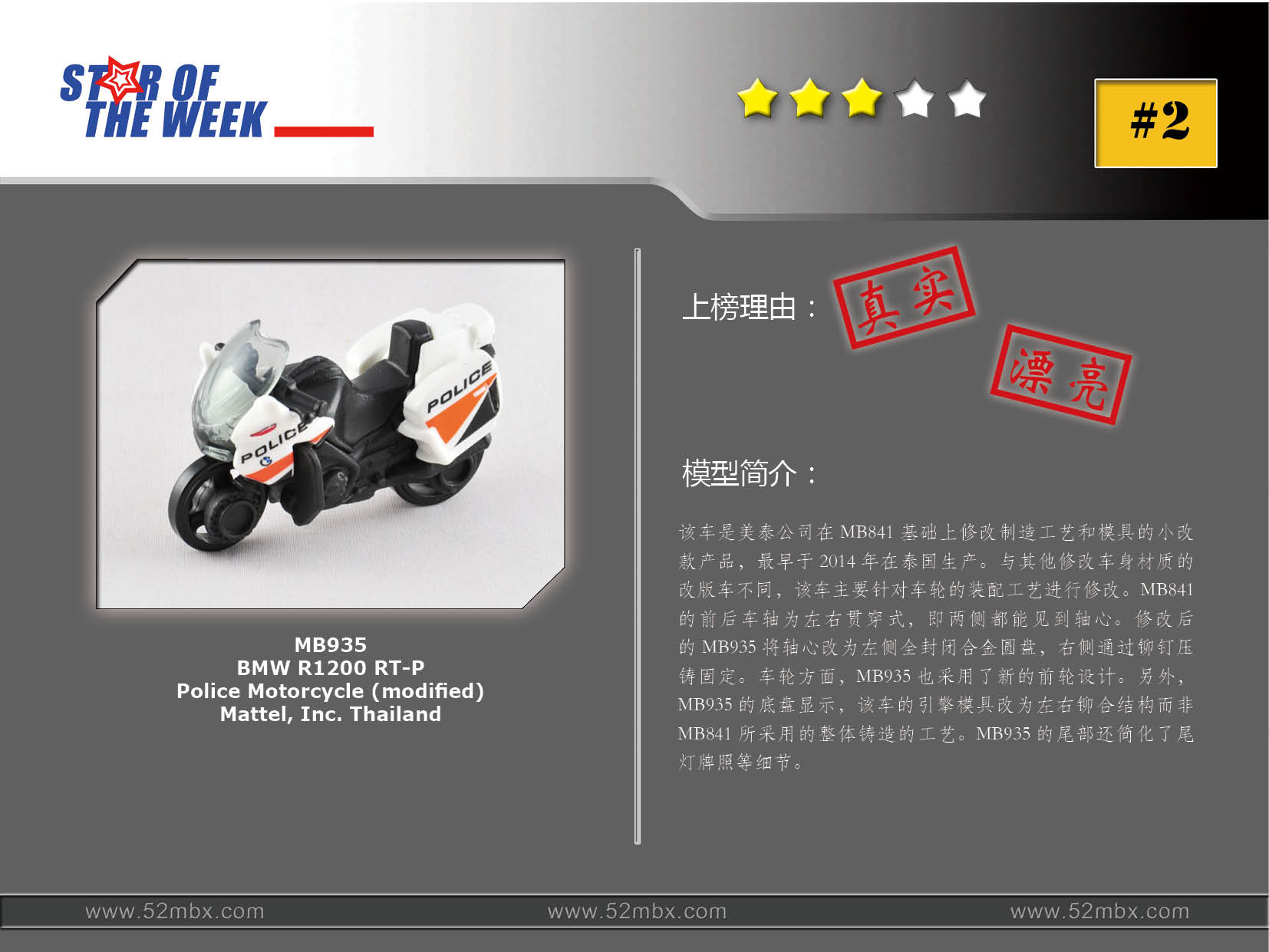 #2 – BMW R1200 RT-P,这台摩托虽然是改版,但并非偷工减料之作。其外观基本与之前的MB841相当,而且塑料与合金的比例也没有变化。考虑到装配工艺成本,该车将车身模具改为左右各一套,使产量大大提高。