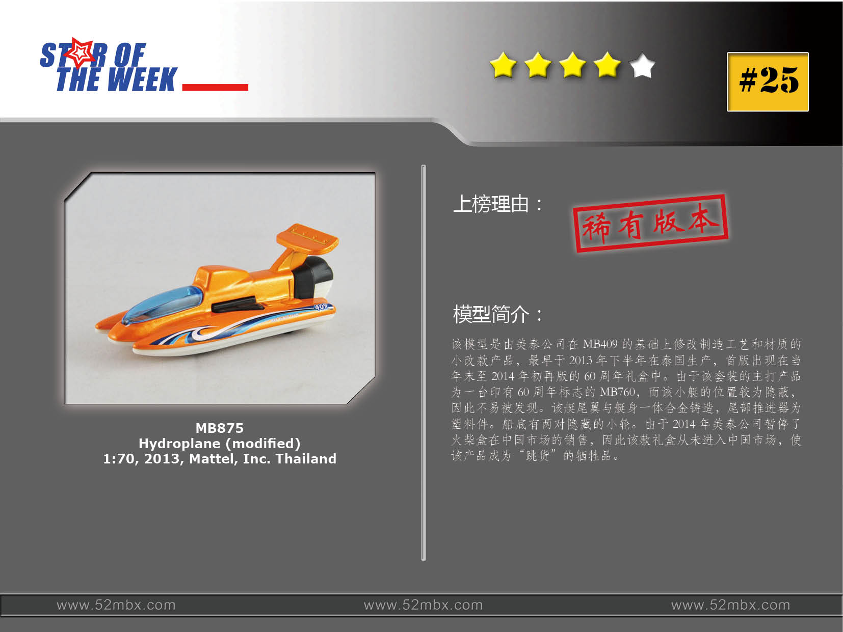 #25 – Hydroplane(改版) ,这是一件令人困惑的模型。改版的目的是将零件数改为四个以内,但却增加了零件的合金成分,整体质量方面是这台复刻版更重一些。另外,由于“跳货”的原因,这件模型被挡在国门之外,成为了孤品。原以为会烂街的车迷,真是欲哭无泪了。![]()