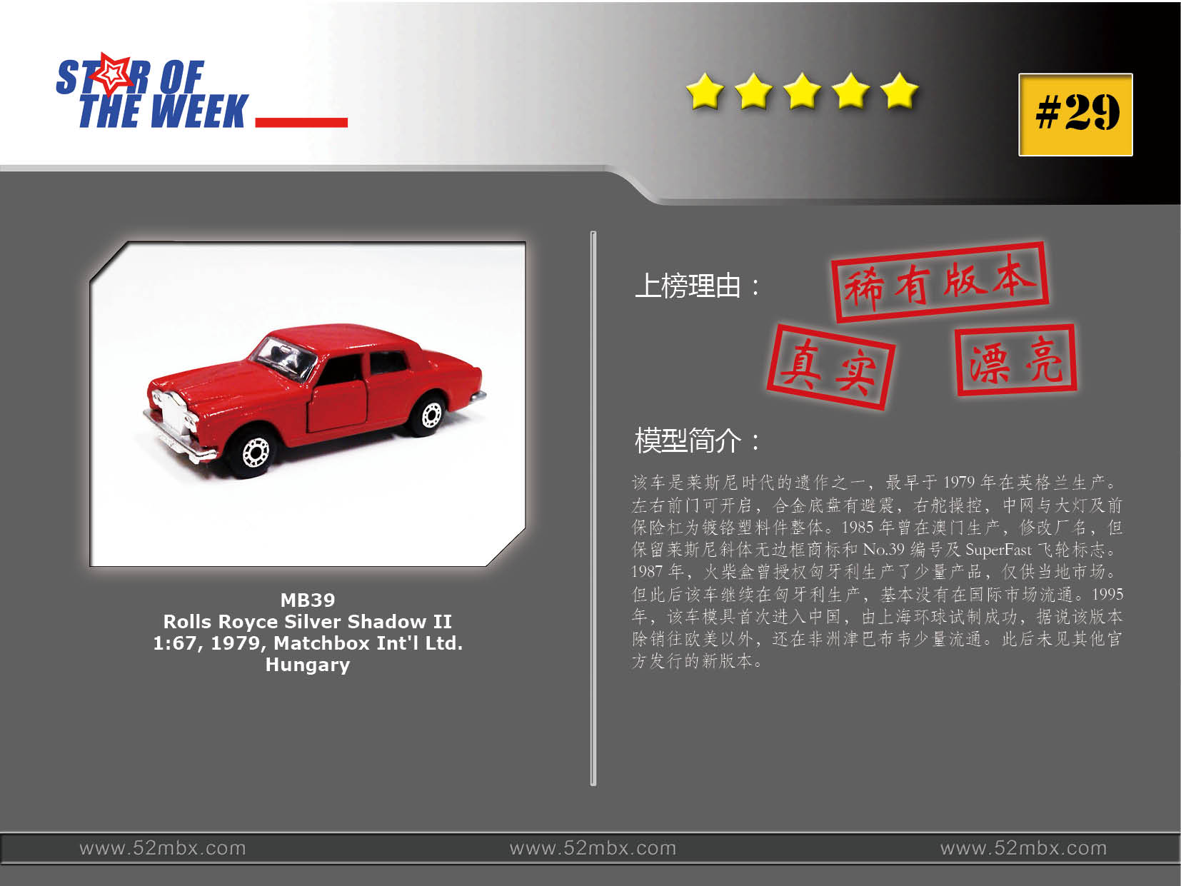 #29 – 劳斯莱斯银影II,车型普通,产地却不一般。我唯一的匈牙利版本,珍藏了。