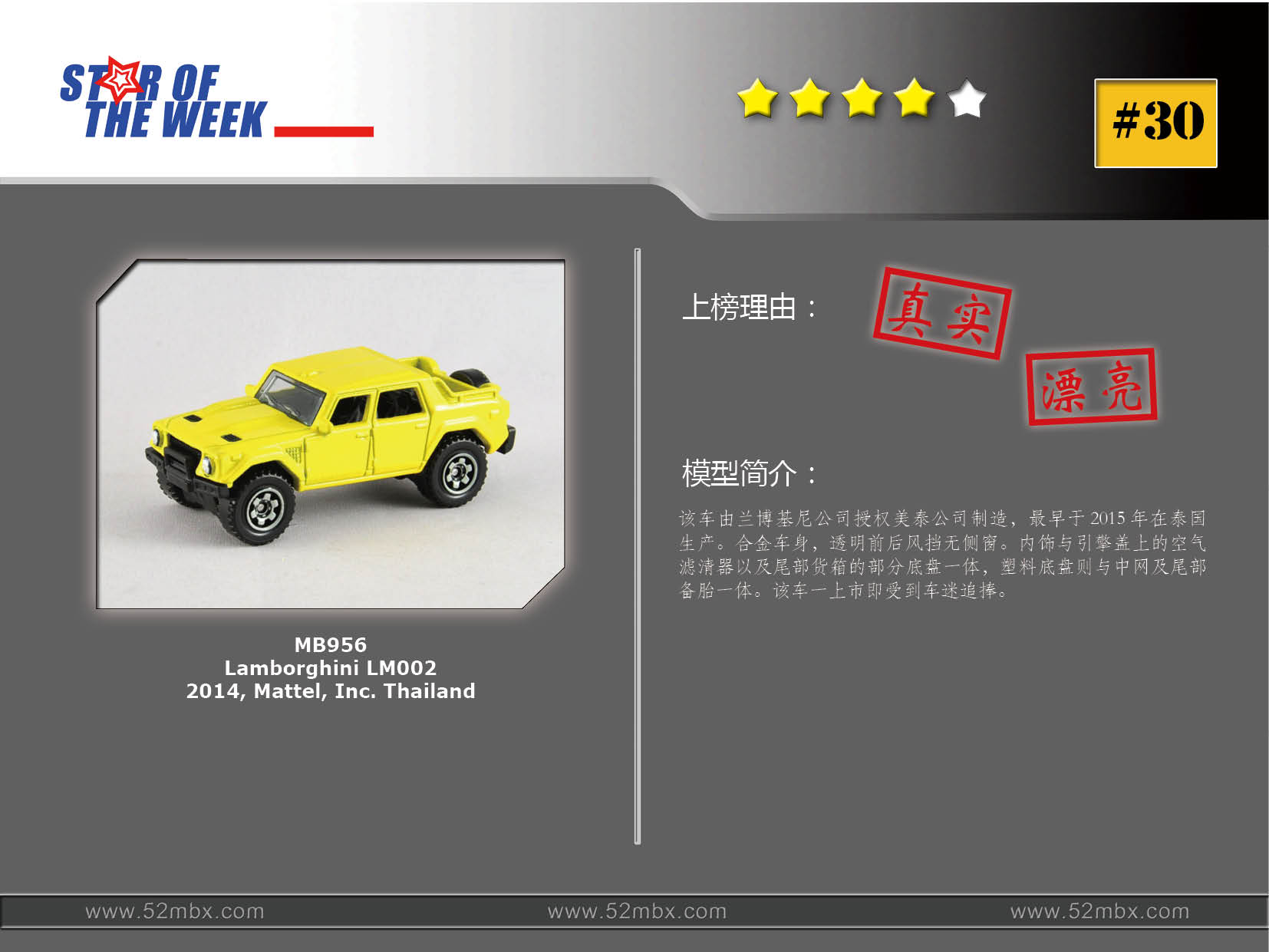 #30 – Lamborghini LM002这个模型设计得很细致,属于近期美泰火柴盒精品,重温1990年代PC赛车游戏里的场景。