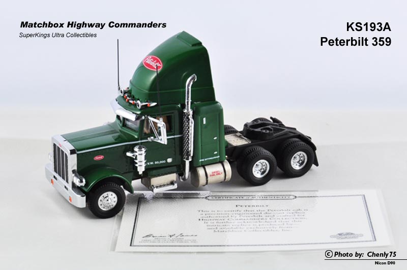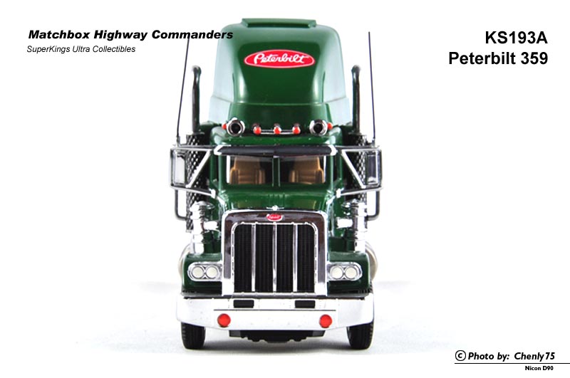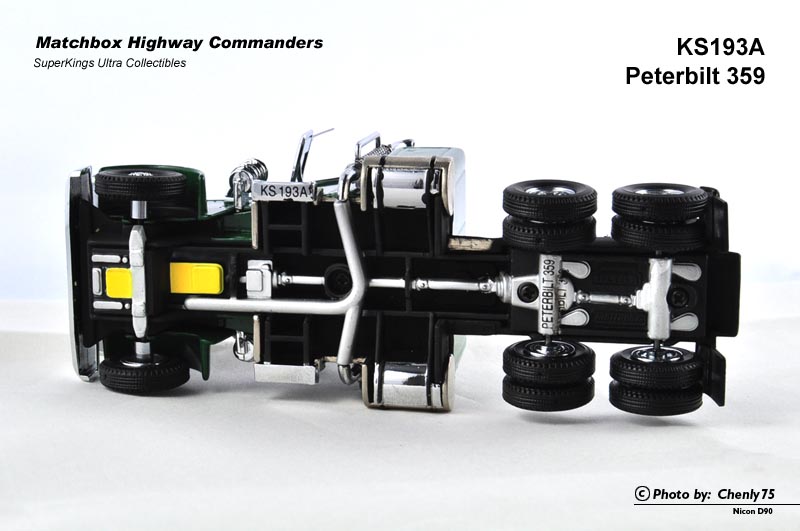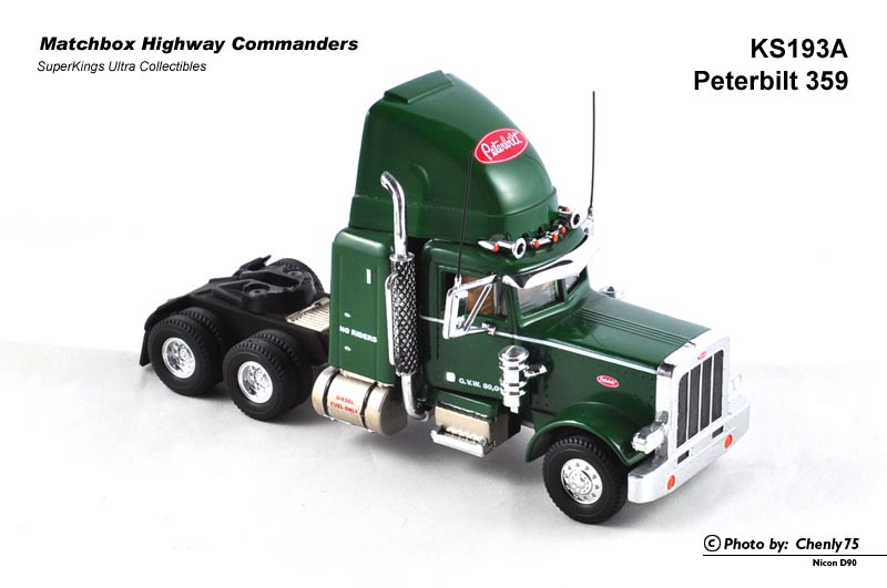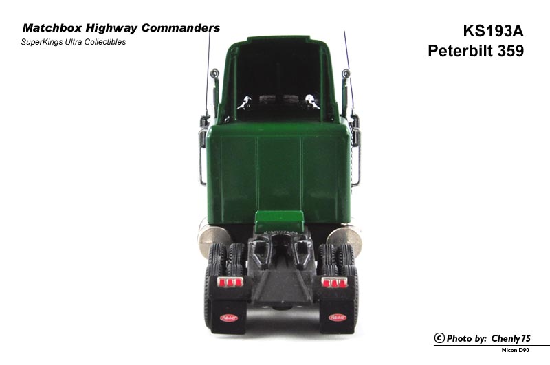 我不知道是真车就有许多共用零件,还是火柴盒为了节省制作成本,整台车在许多细节上都与K193 Peterbilt 359相似。当然烟囱的顶部完全不同——没有向后弯曲的造型。