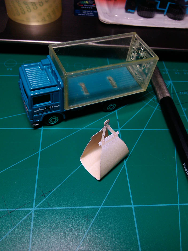 这个套装里除了389以外,附件也很有趣,其中鲨鱼可以通过StarCars系列的JAWS小艇组合获得(已经另外采购),但是抓斗是唯一不可能获得的重要部件。根据去年四月份聚会时拍摄的app版主的实物,我大致在Illustrator绘制了一个侧面,然后翻版成立体纸质部件,做出来的效果嘛,还可以吧……