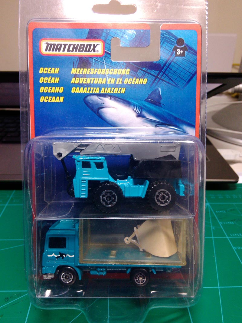 与MB140的相似涂装配对一个组合,缺少鲨鱼和工人以及两个路障。