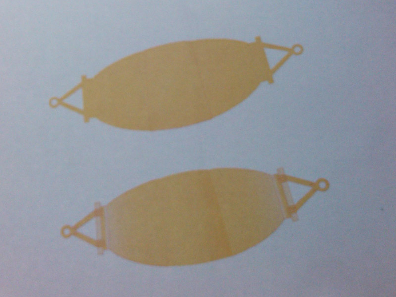 双面对裱以后,剪刀制作外形,刻刀挖去两边的三角形镂空部分,吊环用圆规戳了个洞,直径与MB140的吊钩的相似。