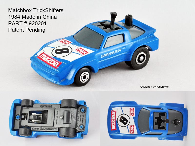 综合上述内容,我们可以从发行时间、品名书写方式上找到线索。根据Wikipedia的资料,Mazda RX7在日本被称为Savana(草原),最早是1978年诞生的。第一代产品被称为SA22C(美国代号FB),生产时间为1980-1985年,其中又有三个系列批次。1978-1980年为第一系列;1981-1983年为第二系列;1984-1985年为第三系列。对应真车发行的顺序,火柴盒世界里的MB91是真正的第一代第一系列,而MB76却是第一代第二系列。至于1984-1985年的第三系列,以及从1986-1990年的整个第二代,火柴盒并没有开发对应的产品。直到1993年才有对应第三代的MB251。