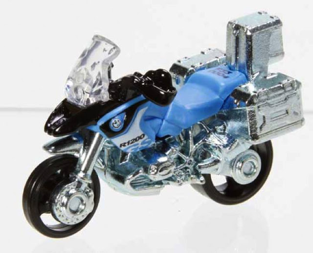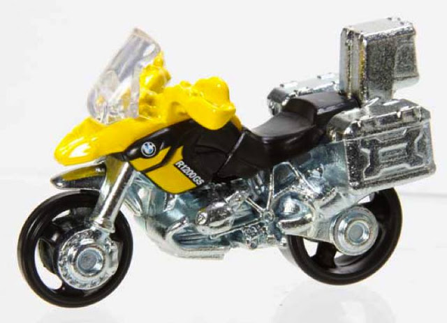 新发行的第一张照片是宝马的R1200GS摩托车,这是新模具,不是那警察版本的改模。它是一辆越野摩托车,我相信收藏爱好者会挺欣慰的因为它比一般的重,这是由于生产过程需要,他用了两个压铸部件,这是一个2003年度的模具,会如期发行的。黄色会先发行,蓝色的是2014年度。