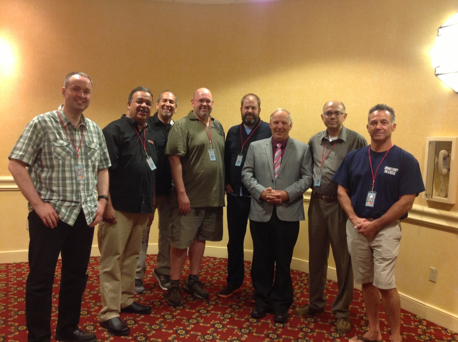 从左至右:David Tilley(第3任大使),Dave Weise(火柴盒设计经理),Michael Heralda(火柴盒设计师),Chuck Wiersma(第6任大使),John Lambert(第8任大使),Nigel Cooper(新任大使),Shabbir Malik(第7任大使),Jim Gallegos(第2任大使)