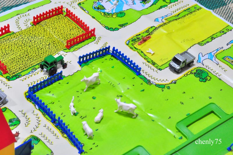 绿色的地台其实是个盒子,可以折叠起来把塑料场景包括房舍等装进去,因此是便携式可携带的套装。