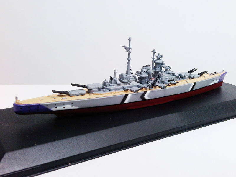 看到这里我无法断定这一定是环球/晶鑫工艺品生产的,但可以肯定的是,这件模型的制造商采用了与SeaKings极其相似的行走工艺。在船底上增加可推动的小轮,虽然完全是玩具化的表现,并且与水线以上直至甲板上层建筑的工艺格格不入,但是 如果这艘战舰模型也是由环球/晶鑫生产的,那么这将很有可能成为环球/晶鑫复刻的ZJ系列的第11件模型。