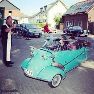 大使很忙,参加了大大小小的各种聚会,近期他同母亲一起驾车到Rhein 附近的Hitdorf 游玩,乘坐的是一台Messerschmitt KR200 Convertible (敞篷三脚鸡),火柴盒在若干年前还曾制作过这台车的模型。