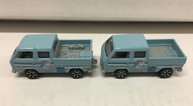 今天上到Lamley Group,先是看到美国网友对风火轮的“五扇门”轮毂的吐槽,后来又搬来火柴盒的宝马M5警车进行对比,对火柴盒的新款五星轮大加赞赏,我心里暗自窃笑,这难道是要借鉴火柴盒的轮毂了么?不过再往下看,一则有关MB1013 VW T3 Cab的消息引起了我的注意。因为上周已有论坛里的海外军团陆续报告,称在H批次发现了两种货箱地板配置的原包产品。为了避免炒作嫌疑,我决定仔细阅读原文。![]()